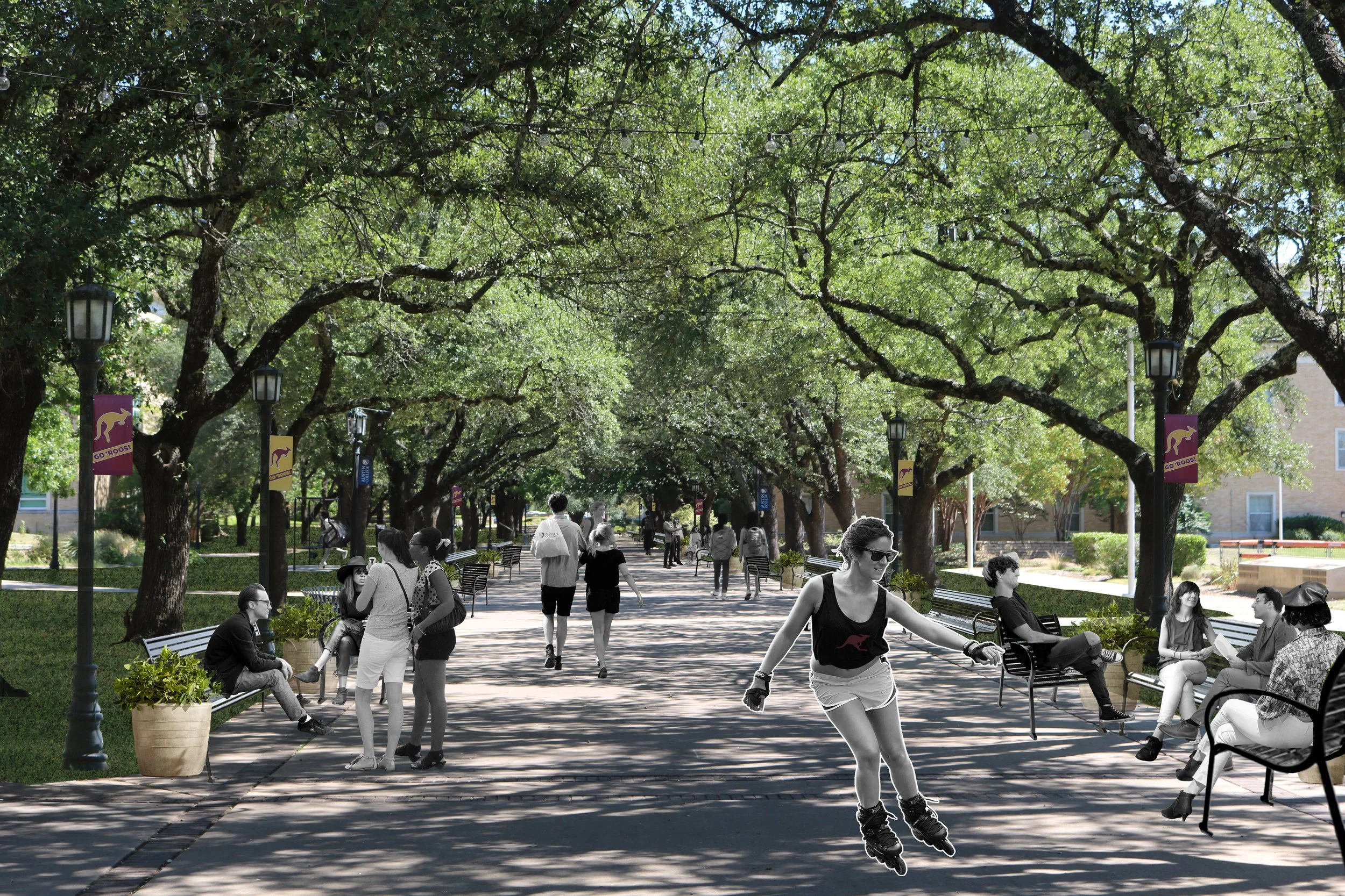 Studio Outside prepared a campus landscape framework plan to prioritize the core of the campus experience and gradually redevelop areas along the perimeter. Working with campus leadership and student representatives, the plan responds to goals related to recruiting & first impressions, social areas, graduation festivities, and alumni events. Key initiatives include landscape planting and maintenance standards, a renovation of the historical Live Oak Mall, and redevelopment plans for the four primary quads in the campus core. Together these will reposition the campus for the next generation of students to enjoy.