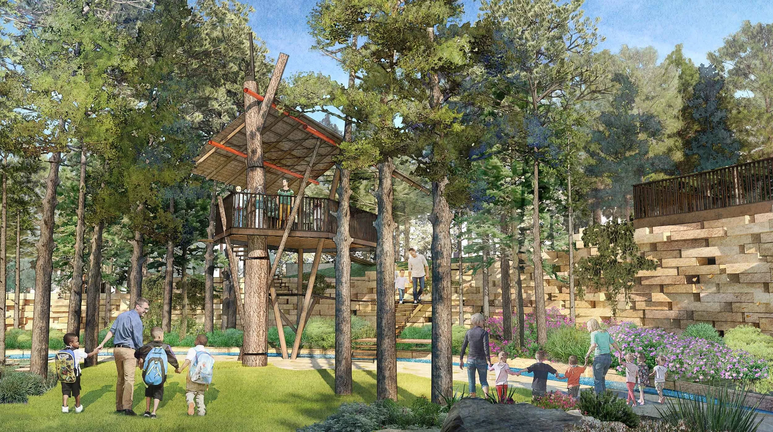 The Columbus Botanical Garden occupies a unique rolling landscape not far from downtown Columbus. Fortunate to build upon a framework of historic structures, the master plan celebrates the heritage of Southern Gardens. A gradient of garden development radiates from the historic farmhouse building, organized on a visual axis with the hilltop meadow garden. More formalized gardens are associated with the farmstead to the east, with an enhanced natural woodland walk to the west, culminating in an immersive natural experience along a wetland and creek corridor. The Children’s Garden will expand the existing Gin House program as an educational and fun destination for families. Enhanced woodland garden walks will introduce visitors to native species.