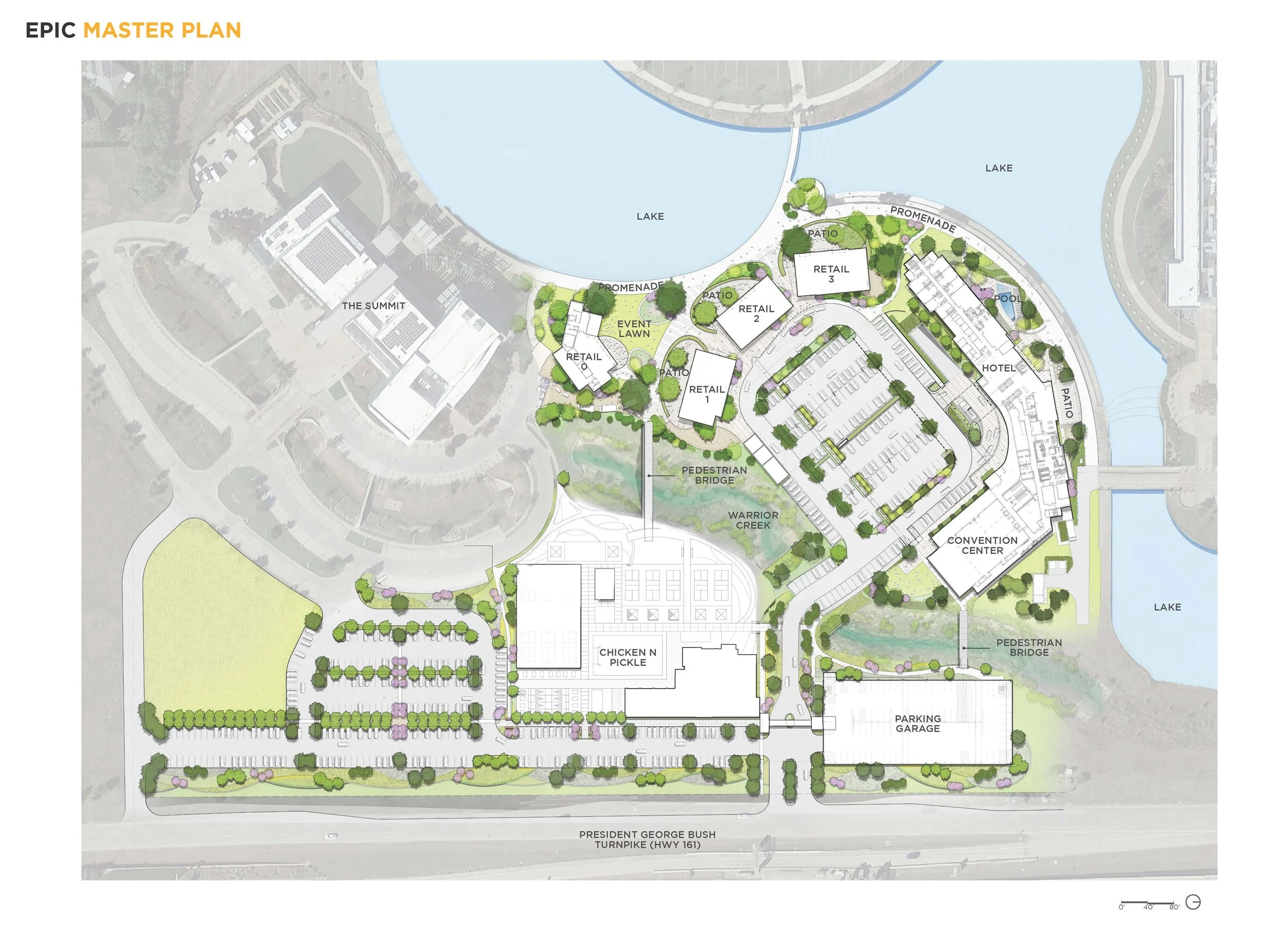 Studio Outside is working on three new projects at Epic Central, a 170-acre recreation and entertainment complex in Grand Prairie. The site includes the Epic Recreation Center, Epic Waters Indoor Water Park, The Summit senior center, the Public Safety Building, and PlayGrand Adventures, an adaptive, inclusive playground. Recent additions feature lakefront retail, a hotel and convention center, and a Pickleball Complex.