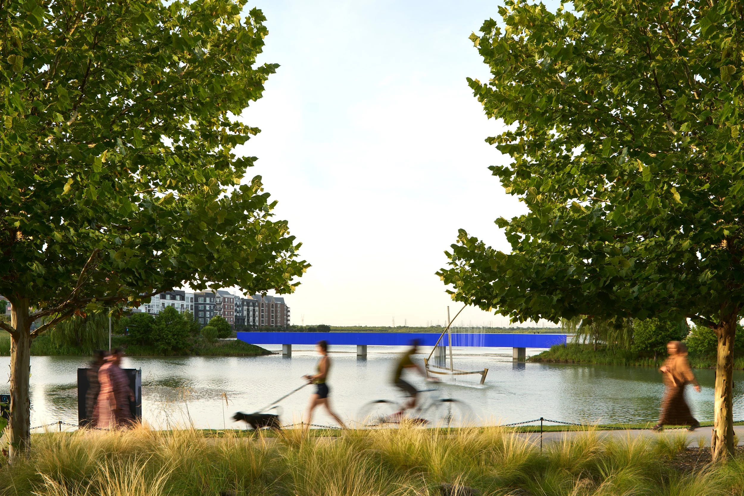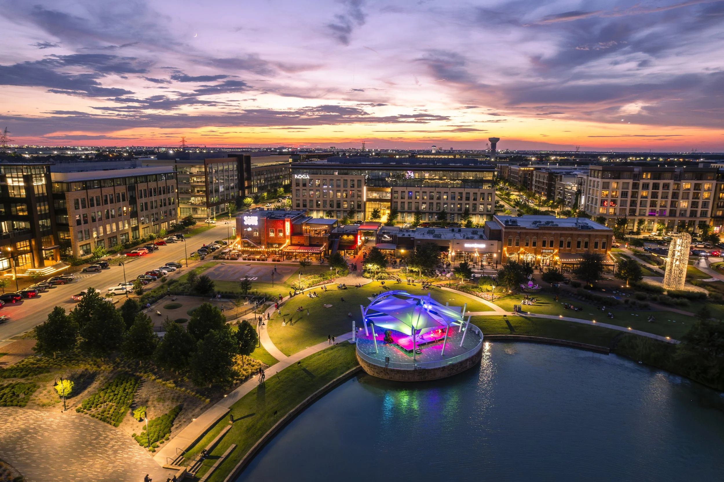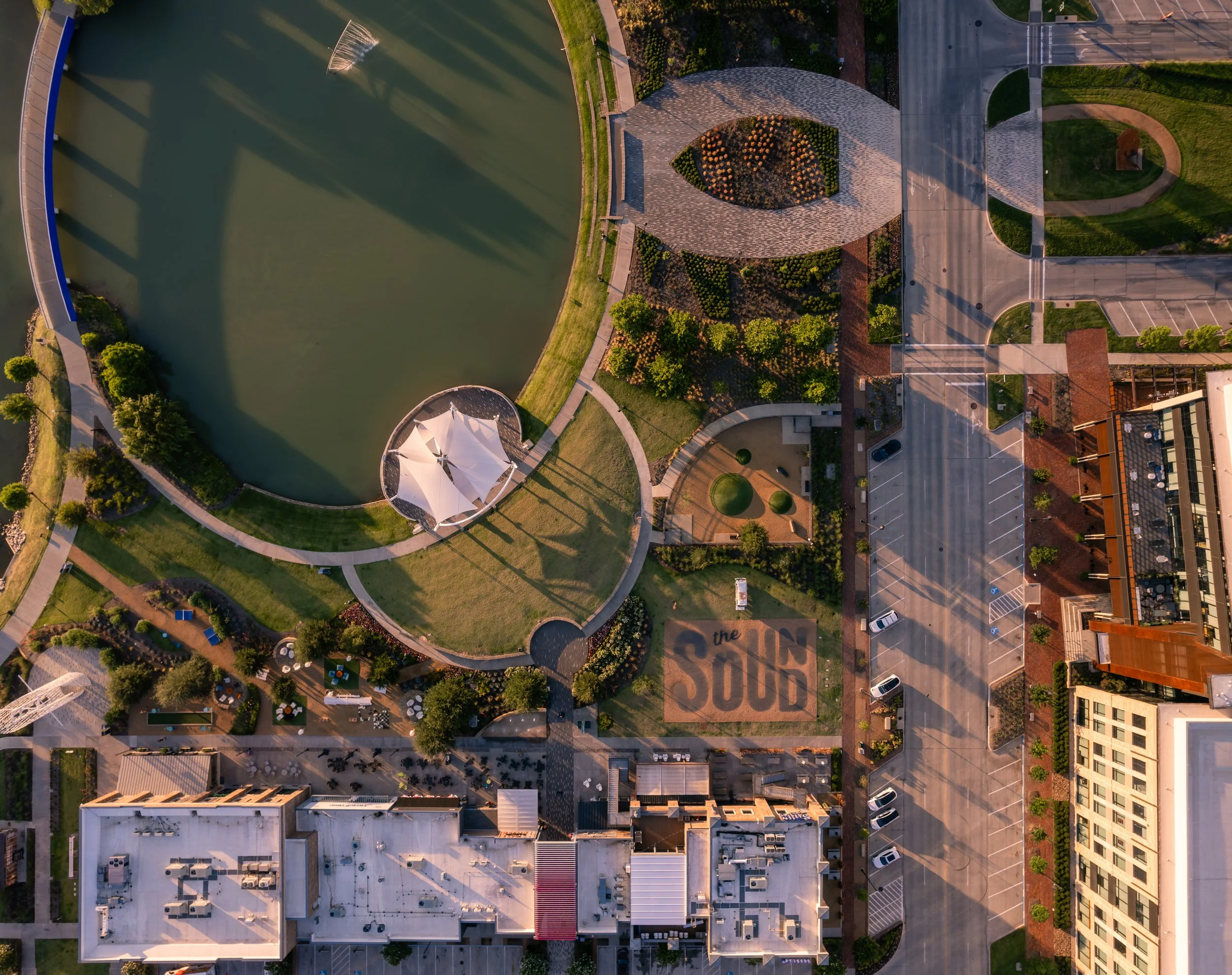 The Sound is the dynamic heart of Cypress Waters in northwest Dallas. Anchored on a cove of North Lake, this entertainment district embraces the shoreline experience with a concert lawn and stage, lakeside dining, trails, and an array of open spaces that welcome residents and visitors alike. Significant art installations amplify the experience of weekly performances overlooking the water. Restaurants thrive, and trails reach out to the surrounding blocks of urban lakeside living. A dog park, several event rental venues, and a casual outdoor games and social atmosphere compliment wraparound views to the water.